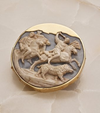 Stones engraved in relief or in recess—cameos and intaglios—incarnate the development of miniature engraving. They offer a stunning journey through human and mineralogical history: from the Roman emperor’s seal to amulets worn by ancient warriors to protect themselves on the battlefield, from the engraved gem of the medieval worshiper to the wedding ring, they are both public and intimate, objects for both adornment and collection. Because their mountings often changed and the most famous among them were often copied, engraved gems are especially difficult to date and identify. During every period, they have been objects of fascination. Romans adoring of Greek art, Renaissance artists seeking to revive antique art, travelers during the Grand Tour and neo-classical amateurs of the 19th century—all have passionately studied and collected these stones of memory.
