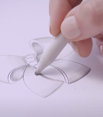 After a presentation of the gouaché technique, experience the designer's gestures while painting a white gold piece in the shape of a bow. Using three different colors, learn how to position light and shadow, and then depict them using gouaché. Understand the creative process and become familiar with this specific High Jewelry design technique.