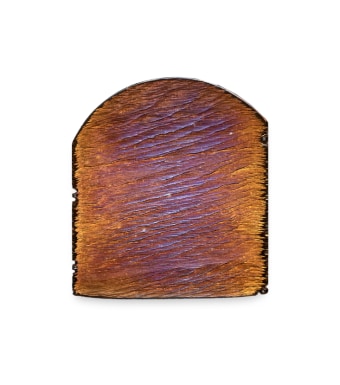 Inspired by the scientific principle of the diffraction grating, Brush began to hand-engrave a series of miniature jewel-sculptures with a multitude of lines, so fine and engraved at such minutely specific angles that they too broke the light, so that what is refracted back to the viewer’s eye are colors.