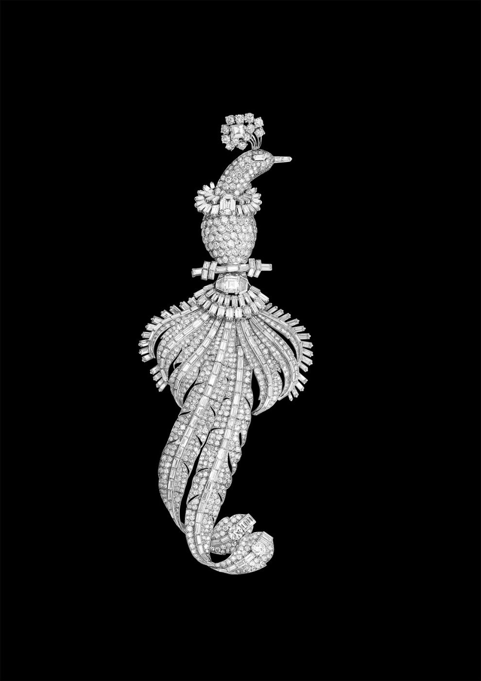 The exhibition is inspired by Farid al-din Attar's Conference of the Birds and is conceived as a poetic experience, beginning with a poem by Mahmoud Darwish, followed by a bejeweled display of bird species and culminating in contemplation of an aviary of imaginary birds by French jeweler Pierre Sterlé (1905-1978).